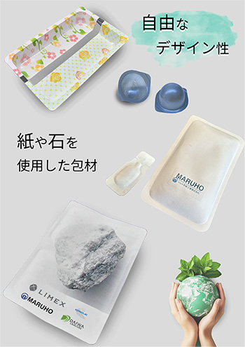 「石」や「紙」を利用した新しい素材はプラスチックの使用量を大幅に削減できます。モノマテリアル等リサイクル性を高め、廃棄物量を削減することができます。環境に配慮した素材を使用することで、企業の社会的責任を果たし、環境意識の高い消費者からの支持を得ることができます。